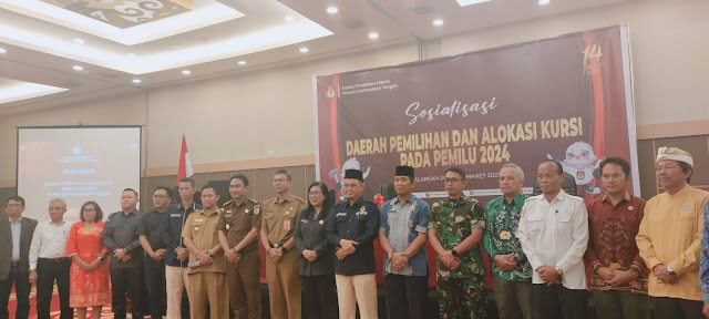 "Sesuai ketentuan hari ini kita melakukan sosialisasi daerah pemilihan dan alokasi kursi Pemilu 2024," kata Ketua KPU Kalteng, Harmain Ibrohim.